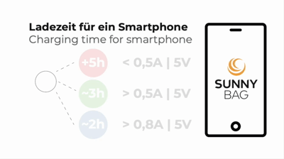 Die Powerbank speichert die schwankende Solarenergie effizient ab und gibt sie gleichmäßig an dein Smartphone ab. So nutzt du dein SUNNYBAG am effizientesten.